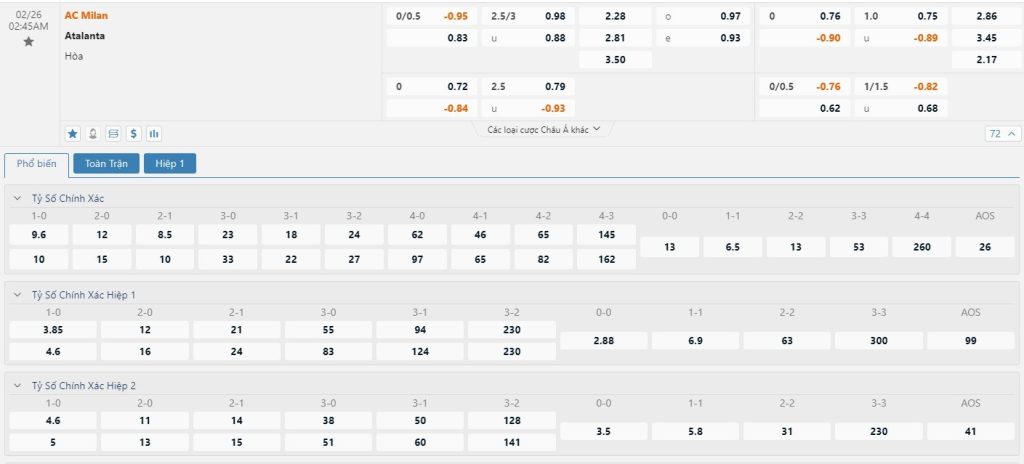 Soi kèo AC Milan vs Atalanta, 02h45, 26/02/2024