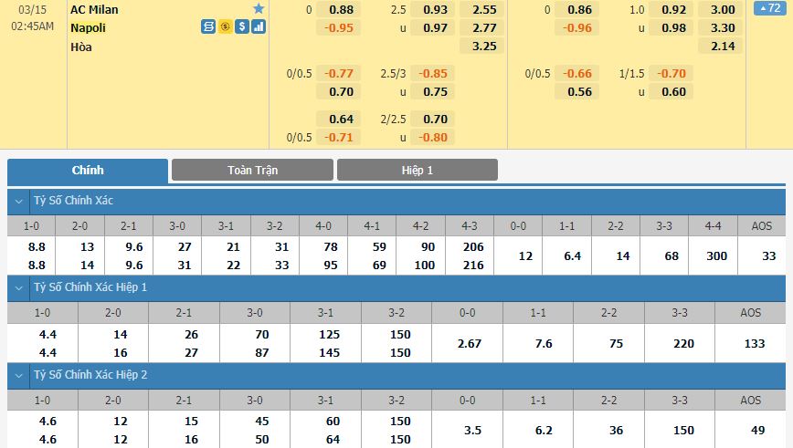 Soi kèo châu Á AC Milan vs Napoli