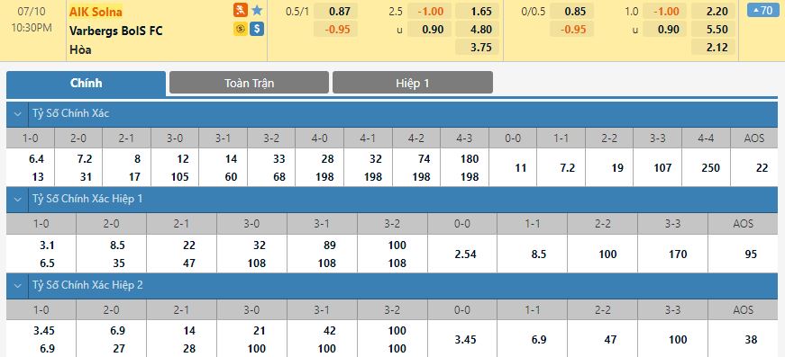 Soi kèo tài xỉu, kèo tỷ số AIK Solna vs Varbergs BoIS