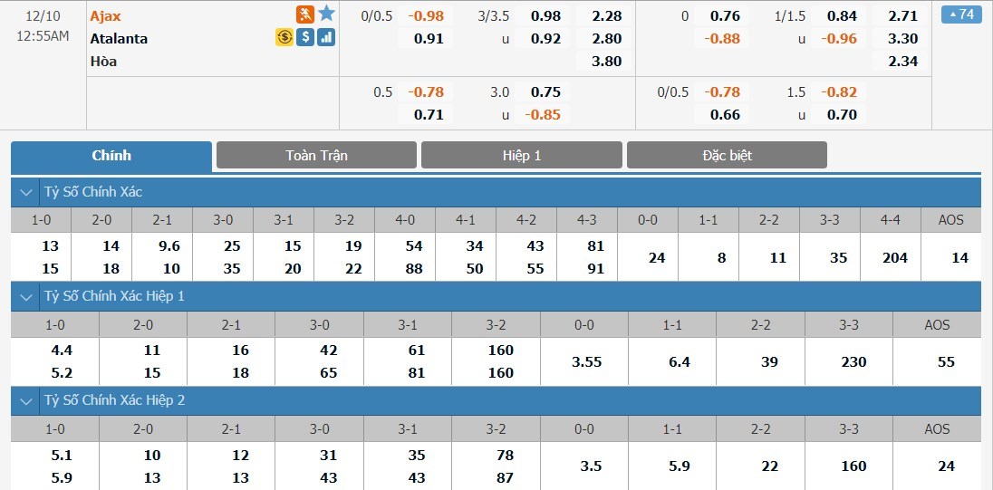 Soi kèo tài xỉu, kèo tỷ số Ajax vs Atalanta