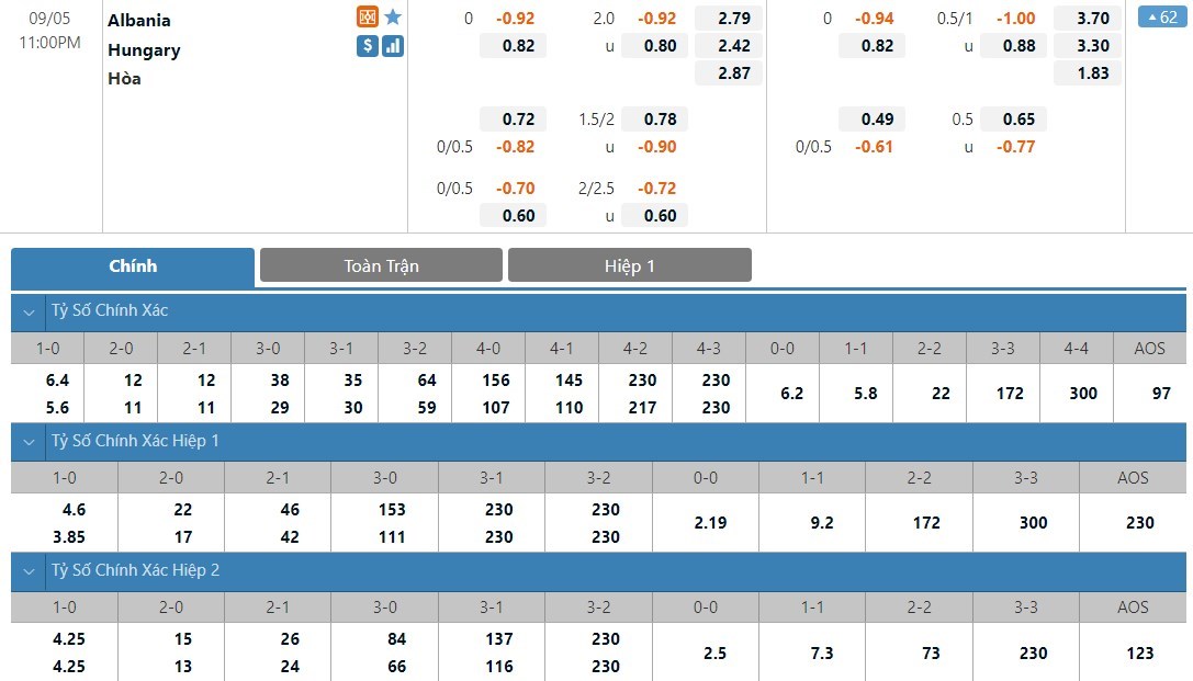 Soi kèo tài xỉu, kèo tỷ số Albania vs Hungary