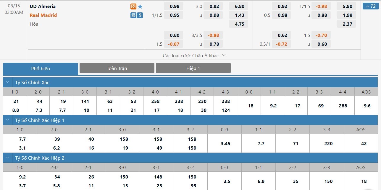 Soi kèo tài xỉu, kèo tỷ số Almeria vs Real Madrid