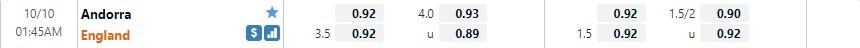 Soi kèo Andorra vs Anh, 1h45, 10/10/2021