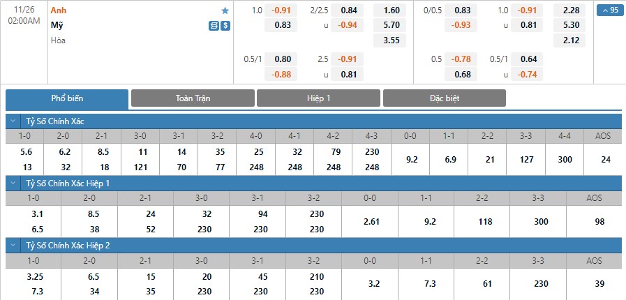 Soi kèo tài xỉu, kèo tỷ số Anh vs Mỹ