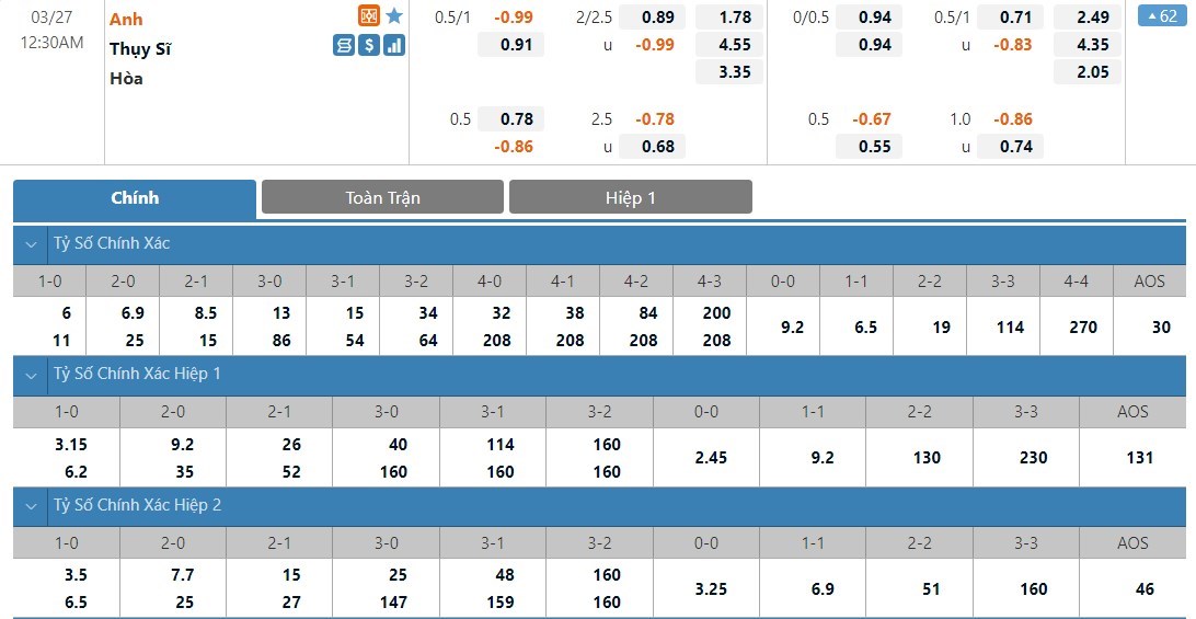 Soi kèo tài xỉu, kèo tỷ số Anh vs Thụy Sĩ