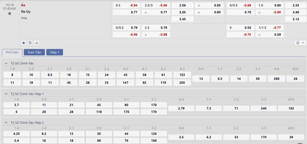 Soi kèo tài xỉu, kèo tỷ số Áo vs Na Uy