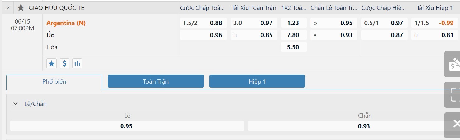 Soi kèo tài xỉu, kèo tỷ số Argentina vs Australia