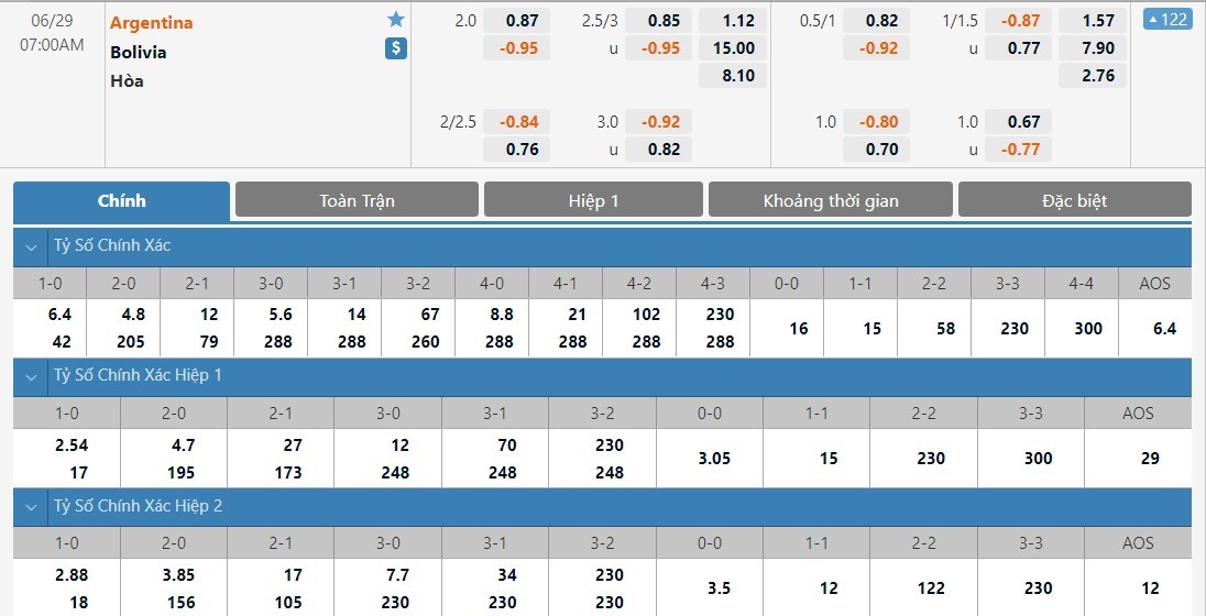 Soi kèo tài xỉu, kèo tỷ số Argentina vs Bolivia