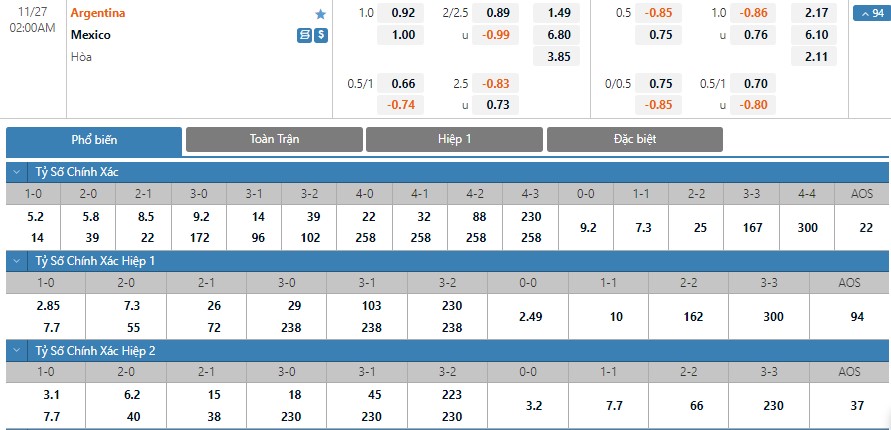 Soi kèo tài xỉu, kèo tỷ số Argentina vs Mexico