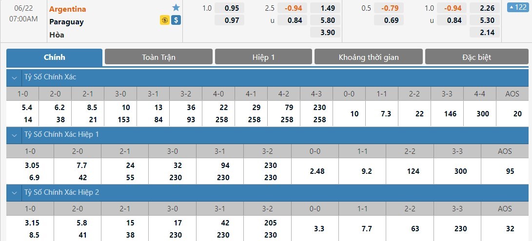 Soi kèo tài xỉu, kèo tỷ số Argentina vs Paraguay