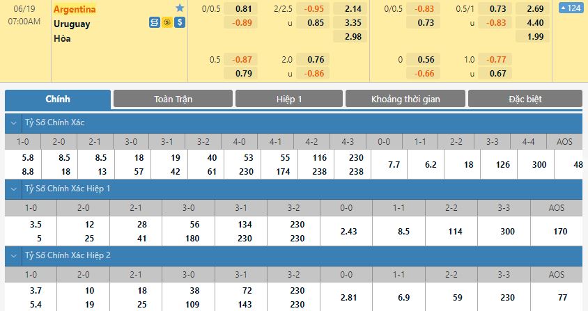 Soi kèo tài xỉu, kèo tỷ số Argentina vs Uruguay