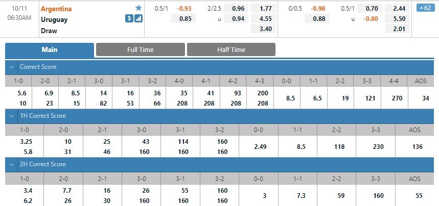 Soi kèo tài xỉu, kèo tỷ số Argentina vs Uruguay