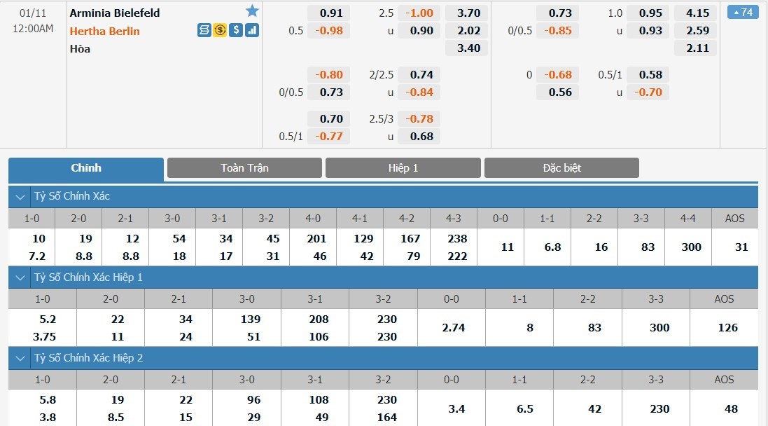 Cả 4 trận dấu gần nhất của Arminia Bielefeld đều chỉ xuất hiện tối đa là 2 bàn thắng. Hàng công của Arminia Bielefeld đang thi đấu cực tệ và những trận đấu của họ thường diễn ra với thế trận rất kém hấp dẫn. Hertha Berlin cũng không phải đội có hàng công được đánh giá cao và ô cược xỉu sẽ là lựa chọn cho kèo đấu này.