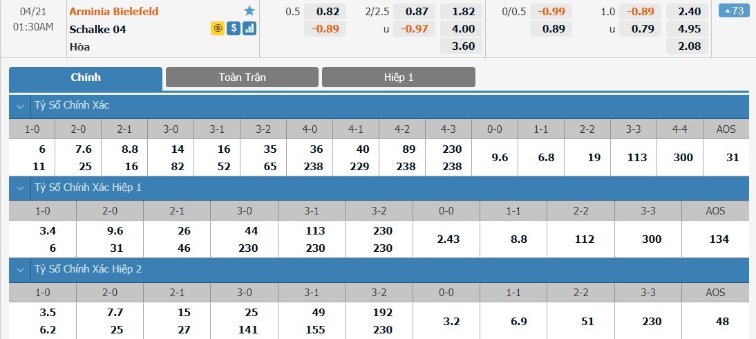 Trận đấu này sẽ là cơ hội vàng để Arminia Bielefeld giành thêm 1 chiến thắng. Schalke 04 là cái tên thi đấu cực tệ ở mùa giải năm nay và họ đang có dấu hiệu buông xuôi. Trong 8 trận đấu gần nhất của mình, Schalke 04 thua tới 6 trận. Khác với Schalke 04, Arminia Bielefeld lúc này vẫn rất khát điểm để đua trụ hạng và họ sẽ là đội thi đấu quyết tâm hơn ở trận này. Đây là lúc mà Arminia Bielefeld cũng có phong độ khá tốt khi mà cửa cược này thắng kèo ở liên tiếp 5 trận gần nhất. Đây còn là trận đấu mà Arminia Bielefeld được thi đấu trên sân nhà và họ là cửa trên có thể đặt niềm tin ở kèo đấu này.