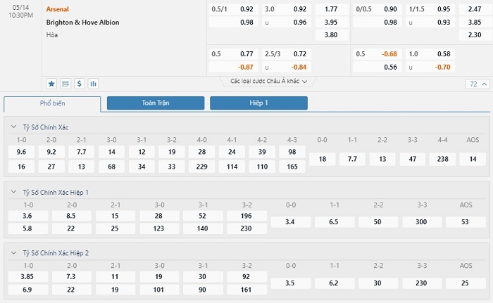 Soi kèo châu Á Arsenal vs Brighton