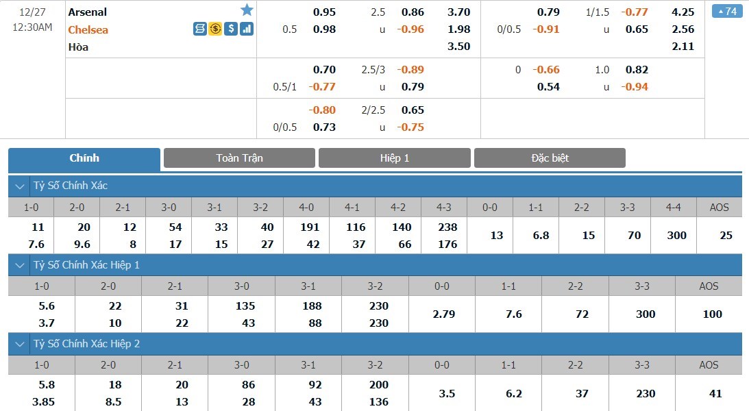 Soi kèo châu Á Arsenal vs Chelsea