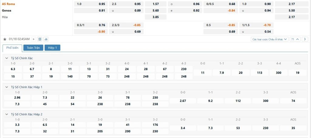 Soi kèo tài xỉu, kèo tỷ số AS Roma vs Genoa