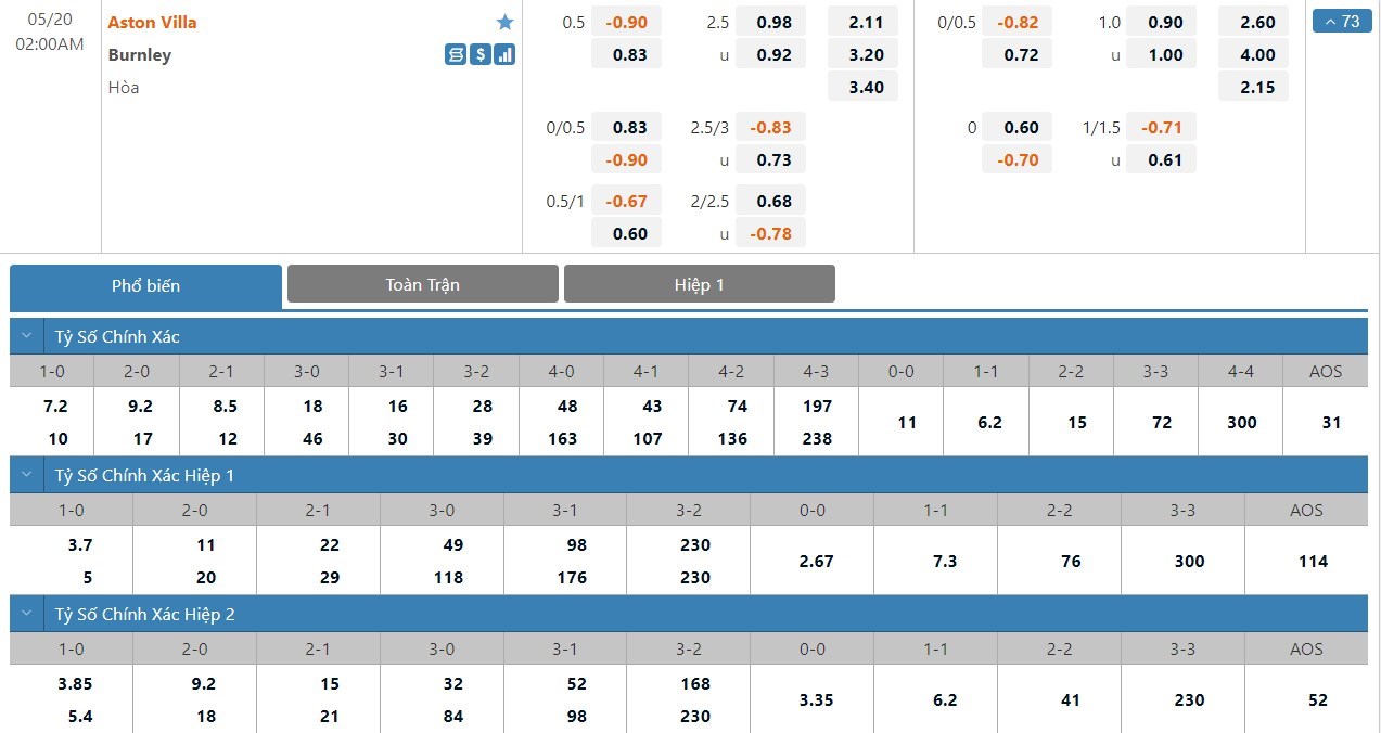 Soi kèo tổng quát Aston Villa vs Burnley