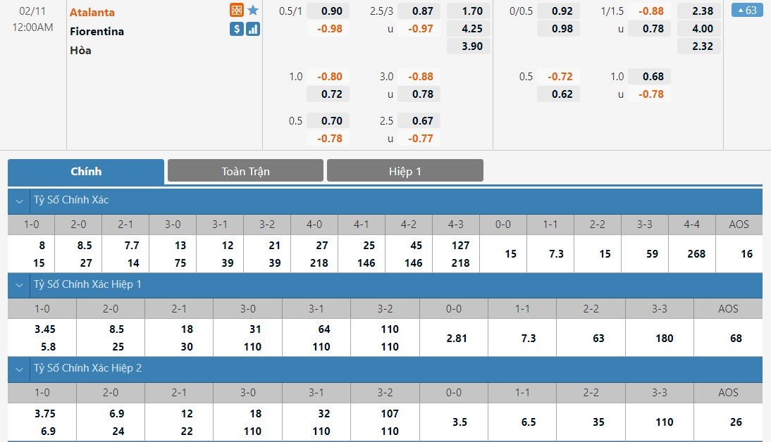 Soi kèo tổng quát Atalanta vs Fiorentina