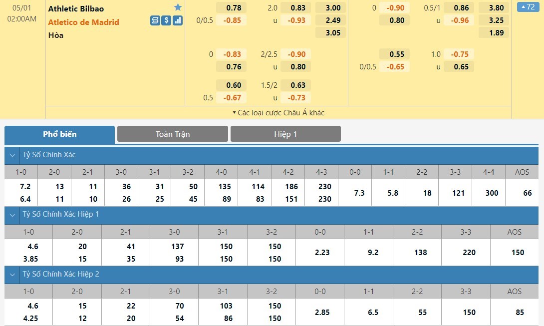 Soi kèo châu Á Athletic Bilbao vs Atletico Madrid