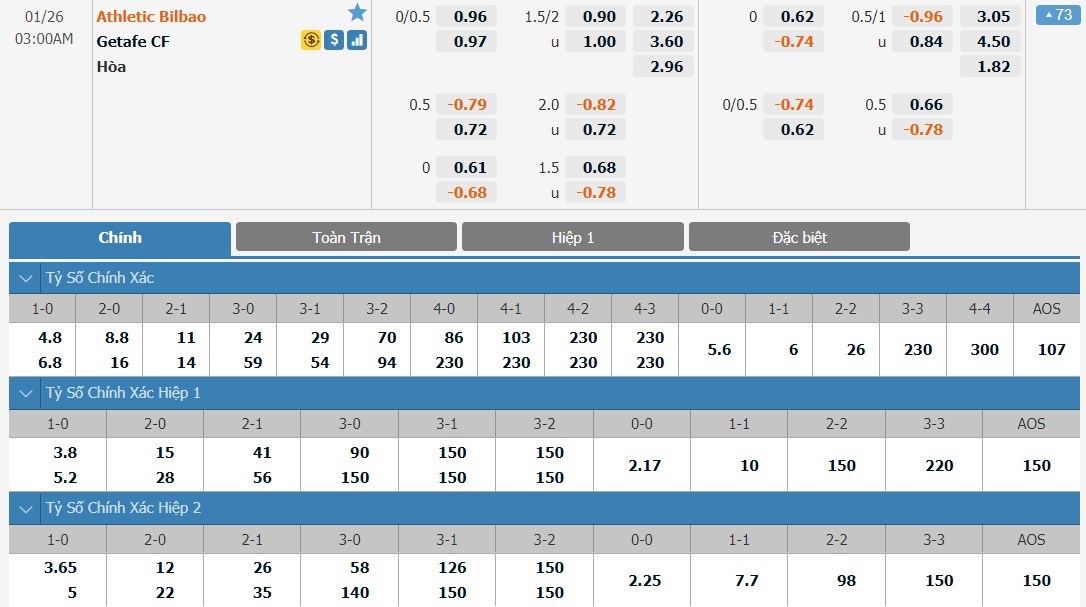 Athletic Bilbao đang có phong độ cao và trong 3 trận đấu gần đây, đội chủ nhà ghi được tới 6 bàn thắng (tính trong 90 phút thi đấu chính thức). Đây cũng là giai đoạn mà hàng công của Getafe thi đấu khởi sắc hơn và với một tỷ lệ tài xỉu khá thấp, ô cược tài sẽ là lựa chọn không tệ cho kèo đấu này.