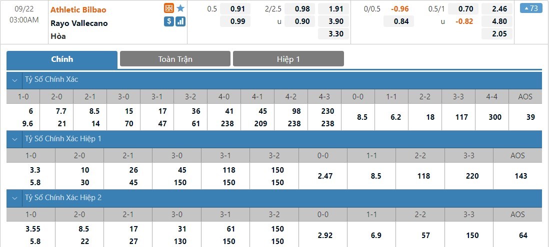 Rayo Vallecano vừa có chiến thắng ấn tượng vơi tỷ số 3-0 trước Getafe và đây là trận thứ 3 liên tiếp họ bất bại. Cửa cược Rayo Vallecano cũng thắng kèo ở cả 3 trận đấu nói trên và họ đang được đánh giá khá cao. Athletic Bilbao mùa này vẫn hòa khá nhiều và họ không phải một cửa trên quá đáng tin cậy. So với Rayo Vallecano, lúc này Athletic Bilbao tỏ ra không quá vượt trội và họ sẽ không dễ thắng ở trận này. Hai đội đang tỏ ra khá ngang sức và với tỷ lệ chấp 1/2 trái, cửa dưới Rayo Vallecano sẽ là lựa chọn an toàn hơn cho kèo đấu này.