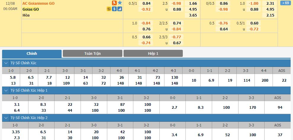 Soi kèo tài xỉu, kèo tỷ số Atletico GO vs Goias