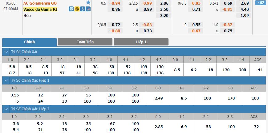Vasco da Gama thực sự đã có 1 màn trình diễn vô cùng chật vật ở mùa giải năm nay. Trong 3 vòng đấu vừa qua, họ đã chỉ có được cho mình 1 chiến thắng, để hòa 1 trận và thua 1 trận. Khả quan hơn rất nhiều, Atletico Go đã chỉ để thua duy nhất 1 trận và thắng trong cả 2 trận còn lại trên tổng số 3 trận gần nhất. Hơn nữa, việc được thi đấu trên sân nhà cũng sẽ tiếp sức rất nhiều và đem lại lợi thế không hề nhỏ cho Atletico GO trong kèo đấu này. Chính vì lẽ đó, đội chủ nhà được đánh giá cao hơn hẳn trên bàn cân Châu Á và sẽ phải chấp bàn trong cả 2 hiệp thi đấu.