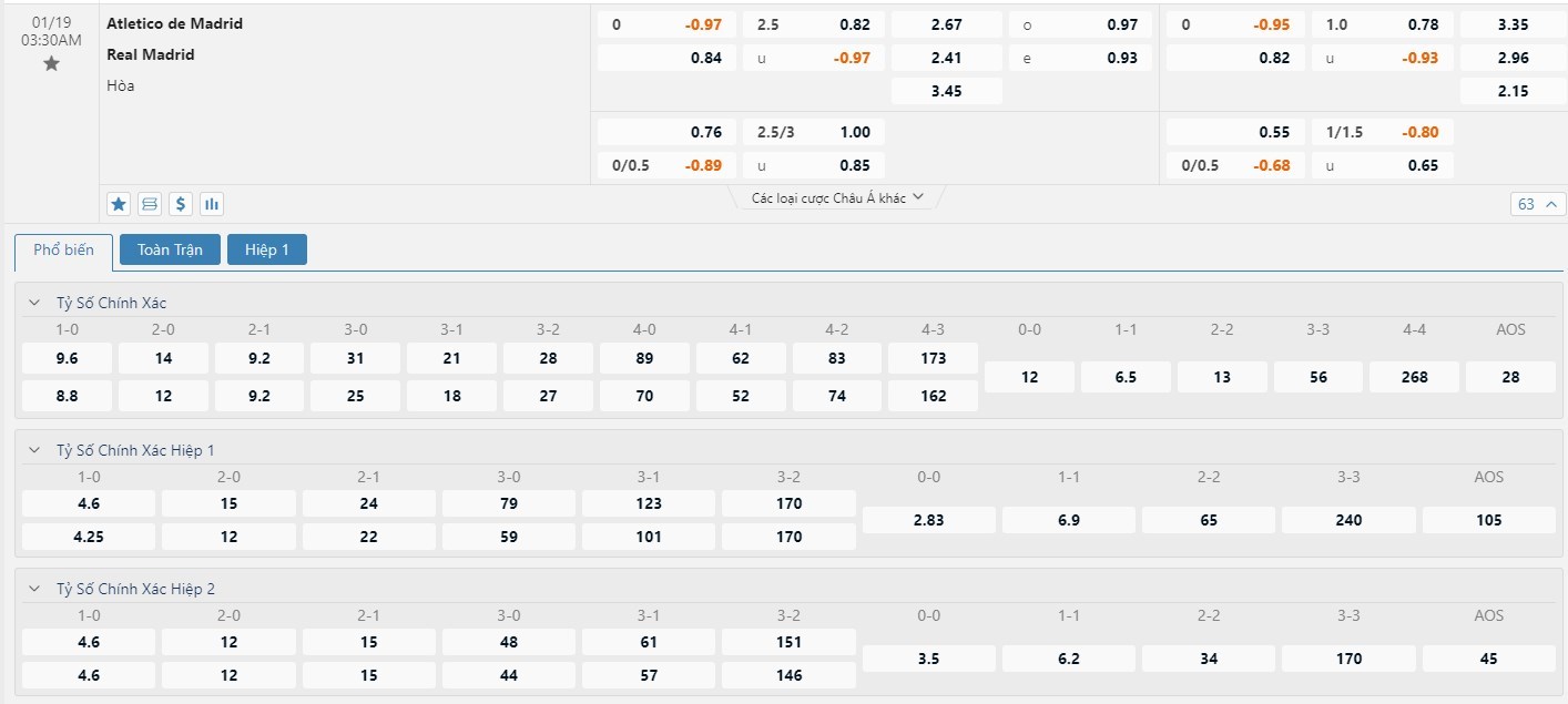 Soi kèo châu Á Atletico Madrid vs Real Madrid