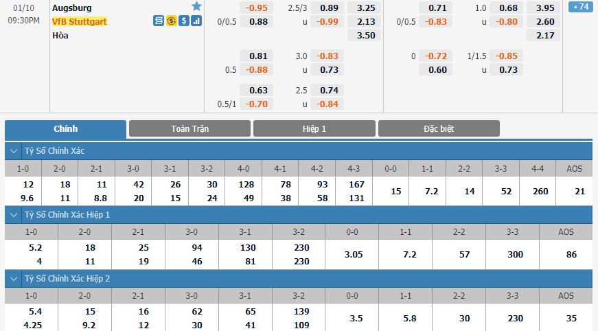 Dự đoán kèo tỷ số hiệp 1: Augsburg 0-1 Stuttgart