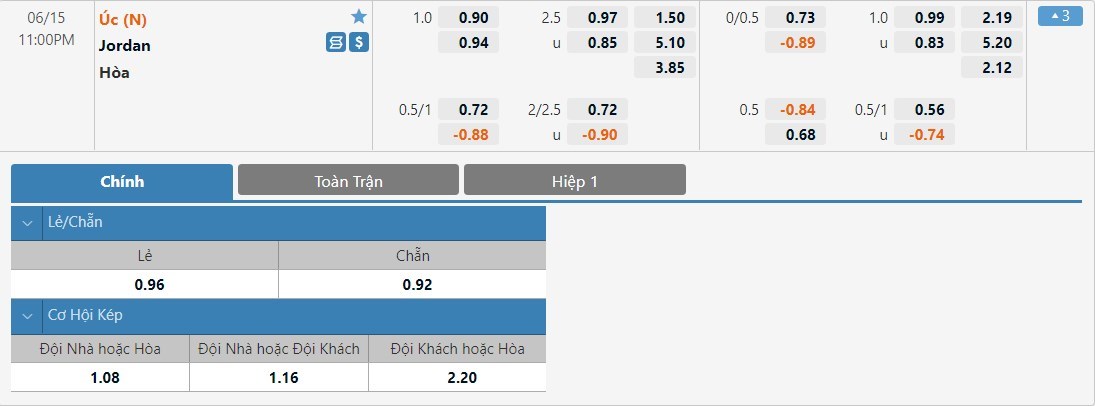 Tỷ lệ cược của Australia và Jordan ở kèo đấu này sẽ có sự chênh lệch rất lớn. Phong độ của Australia đang là rất tốt và sẽ là quá khó để Jordan có thể làm nên chuyện ở trận này. Ở trận lượt đi của 2 đội, Australia cũng từng đánh bại Jordan 1-0 ngay trên sân khách. Ở kèo đấu này, cửa trên Australia an toàn sẽ là lựa chọn hợp lý.