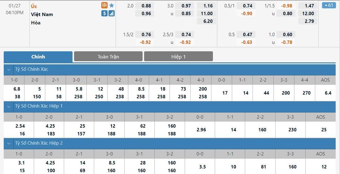 Dự đoán kèo tỷ số hiệp 1: Australia 0-0 Việt Nam