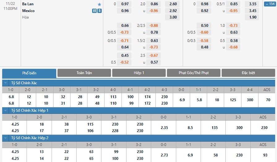 Soi kèo tài xỉu, kèo tỷ số Ba Lan vs Mexico