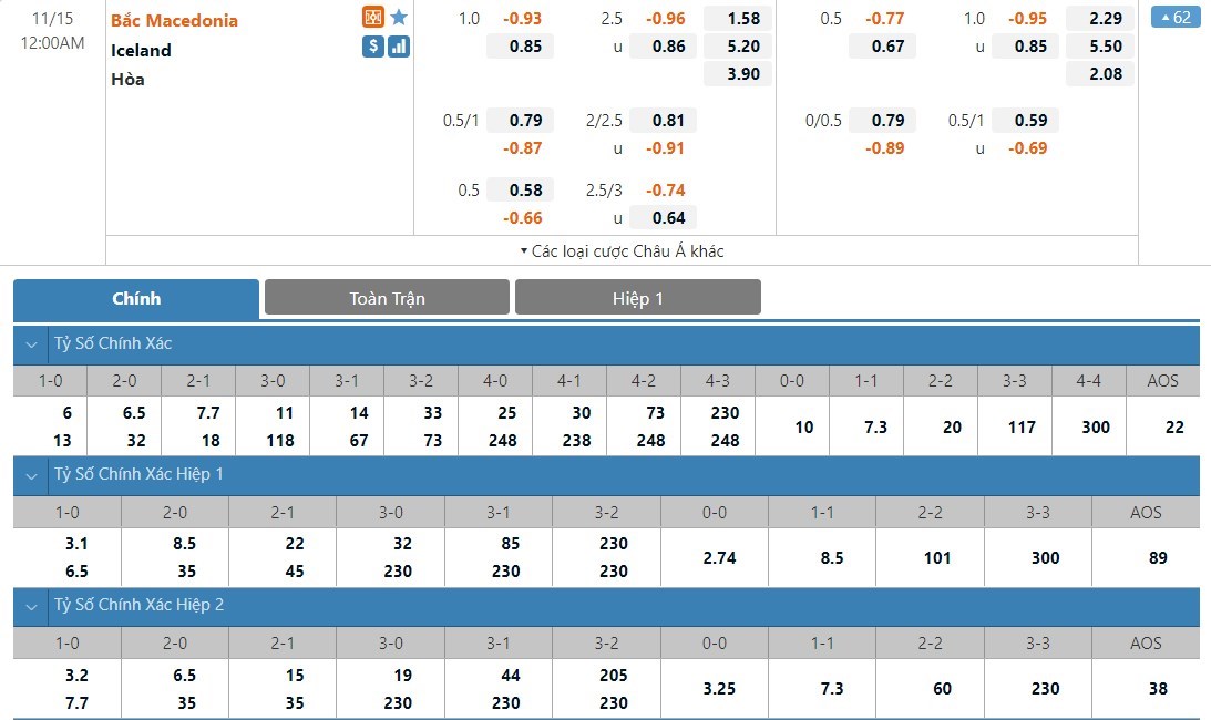 Soi kèo tổng quát Bắc Macedonia vs Iceland