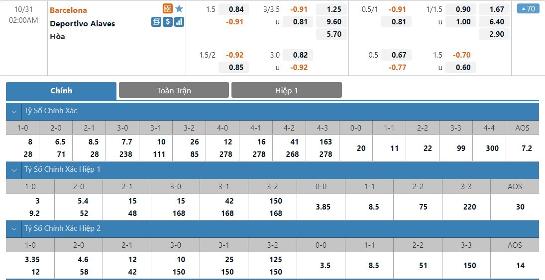 Trong 11 trận đấu gần nhất của Barcelona, chỉ 1 lần trận đấu có thể kết thúc với nhiều hơn 3 bàn thắng được ghi. Hàng công của Barcelona đang tỏ ra không quá hiệu quả và những trận đấu của họ đang không thường xuyên xuất hiện quá nhiều bàn thắng. Alaves đang có dấu hiệu cải thiện được phong độ và đội khách cũng đang phòng ngự không quá tệ. Ở kèo đấu này, ô cược xỉu sẽ là lựa chọn được đánh giá cao hơn.