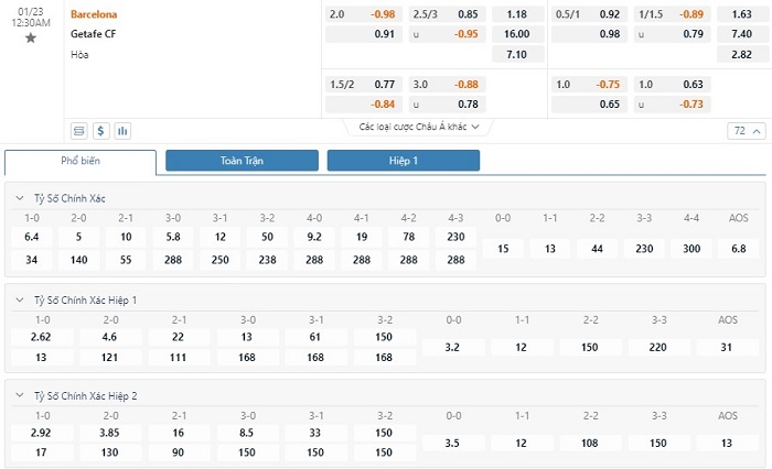 Soi kèo châu Á Barcelona vs Getafe