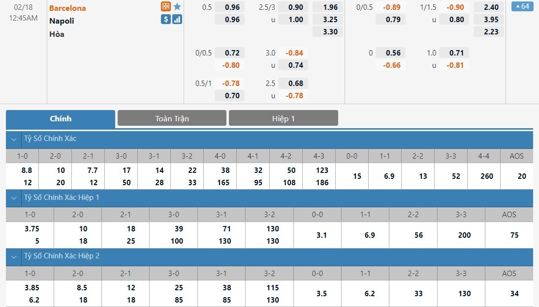Soi kèo tài xỉu, kèo tỷ số Barcelona vs Napoli