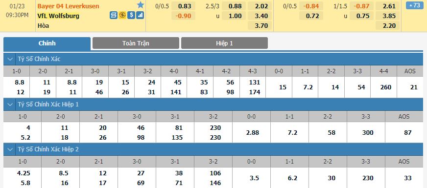 Dự đoán kèo tỷ số hiệp 1: Bayer Leverkusen 1-1 Wolfsburg