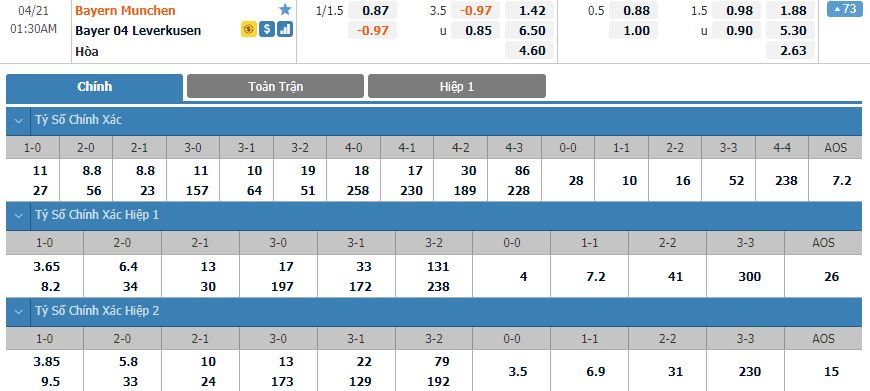 Soi kèo châu Á Bayern Munchen vs Bayer Leverkusen