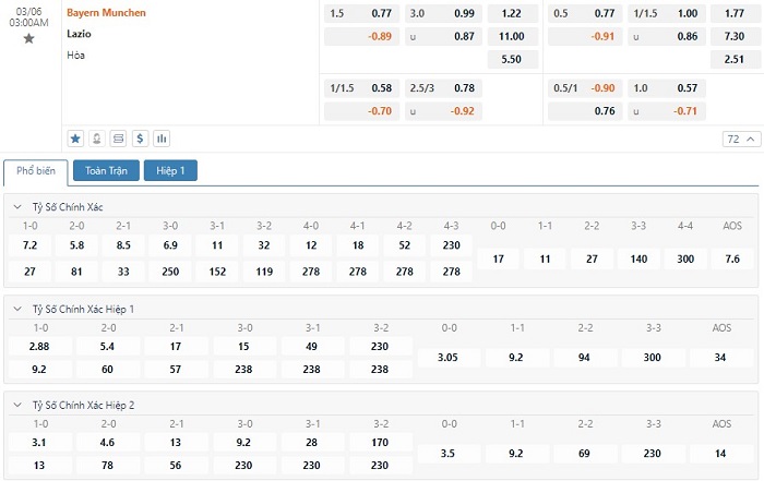 Soi kèo châu Á Bayern Munich vs Lazio