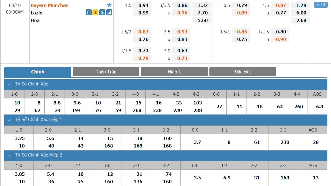 Đây là giai đoạn mà hàng phòng ngự của Lazio đang thi đấu khá tệ. Trong 4 trận đấu gần đây, Lazio để thủng lưới tới 11 bàn thắng. Ở trận đấu này, chắc chắn Lazio cũng không thể thi đấu quá cẩn thận khi mà họ đã thua đậm ở trận lượt đi. Bayern Munich vẫn là đội thi đấu rất hiệu quả và ở kèo đấu này, ô cược tài sẽ là lựa chọn không tệ.