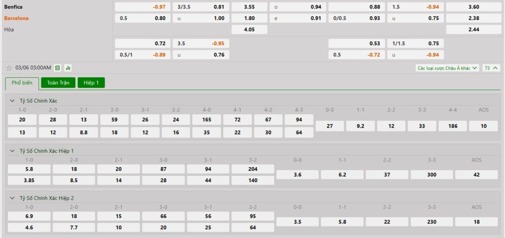 Soi kèo tài xỉu, kèo tỷ số Benfica vs Barcelona
