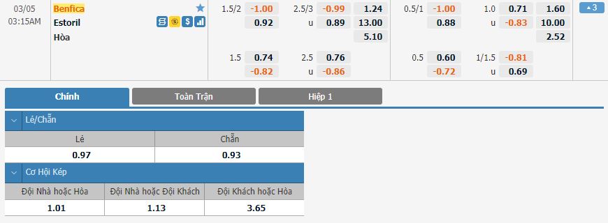 Soi kèo tổng quát Benfica vs Estoril