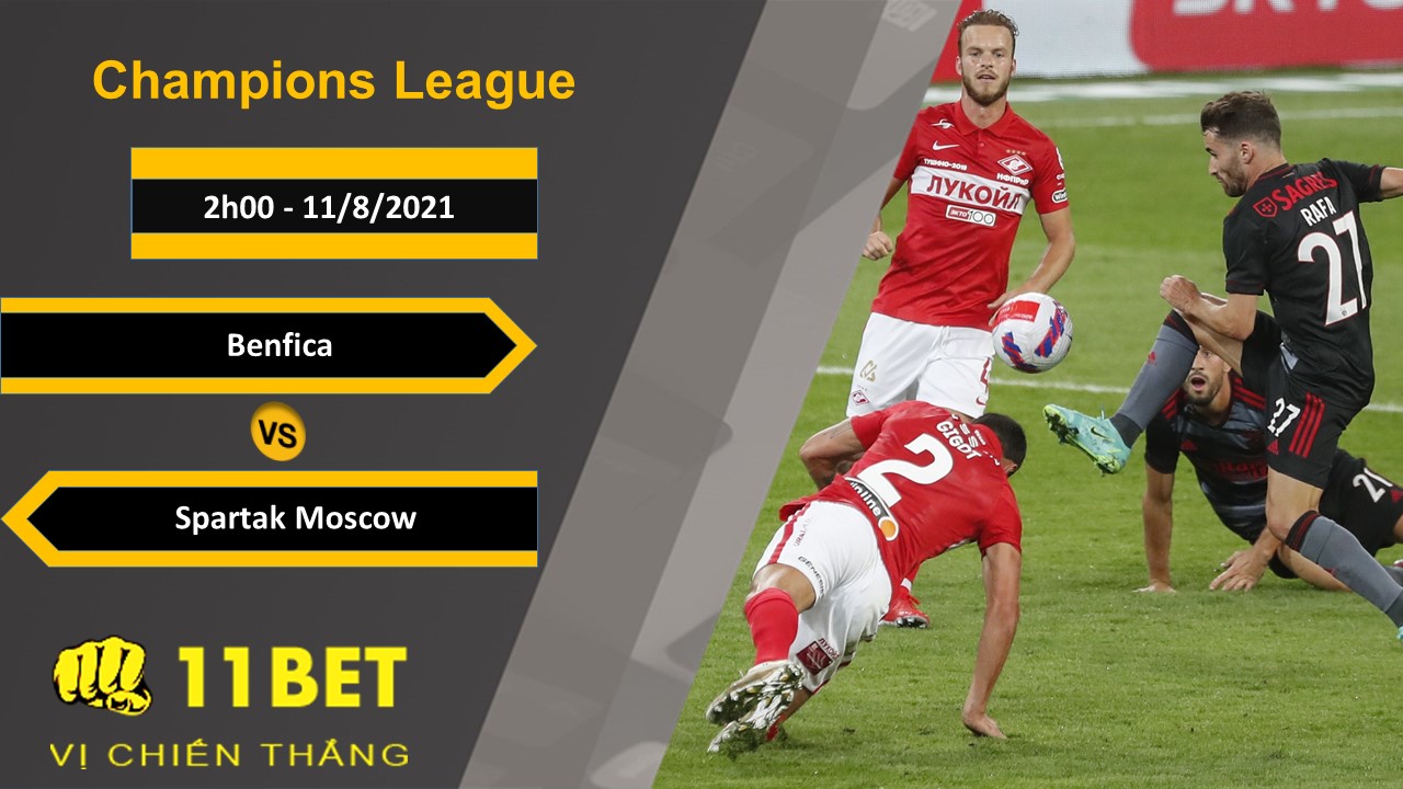 Benfica vs Spartak Moscow – Soi kèo bóng đá hôm nay lúc 2h00 ngày 11/8/2021 – Champions League