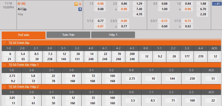 Kèo tài xỉu toàn trận: Tài (FT)