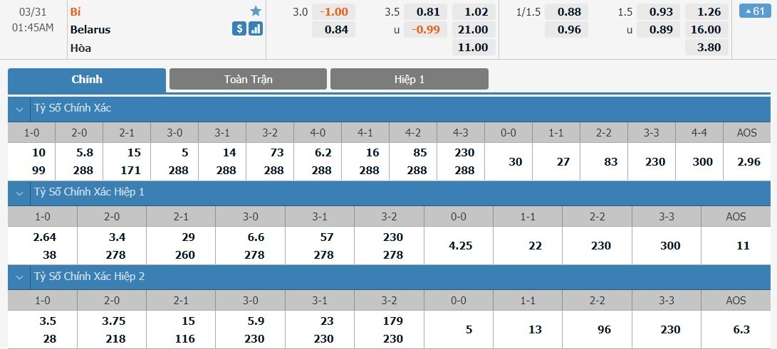 Soi kèo tài xỉu, kèo tỷ số Bỉ vs Belarus