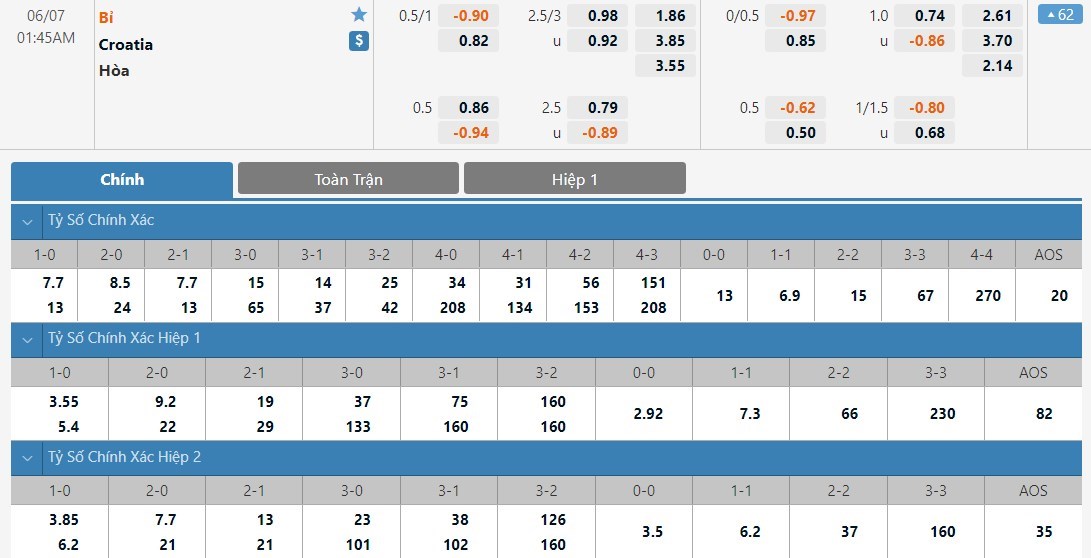 Hàng công toàn sao của Bỉ đang thi đấu ấn tượng và những trận đấu gần đây của họ thường xuất hiện khá nhiều bàn thắng. Phía bên kia chiến tuyến, Croatia cũng sở hữu một hàng công khá chất lượng và họ có khả năng ghi được nhiều bàn thắng ở thời điểm hiện tại. Với tỷ lệ tai xỉu ở mức 2 3/4 trái, ô cược tài sẽ là lựa chọn được đánh giá cao hơn ở kèo đấu này.