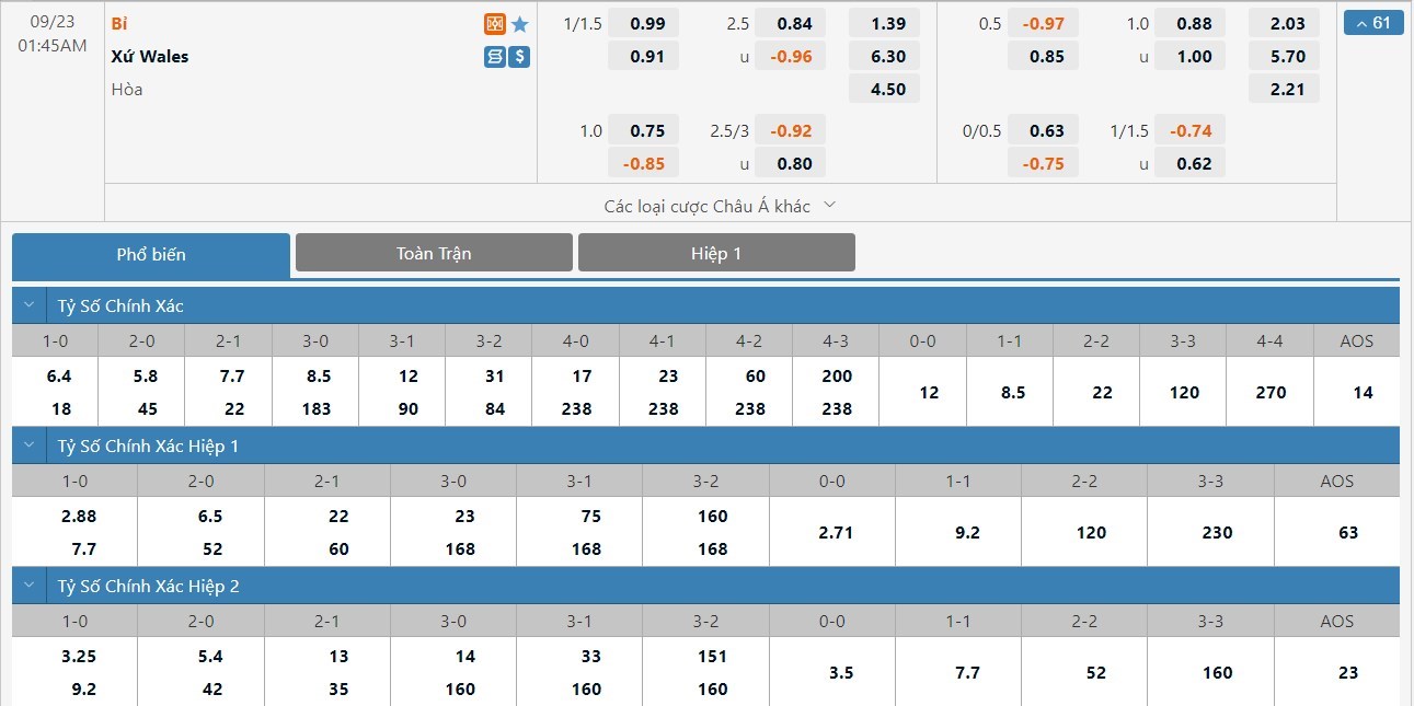 Soi kèo tài xỉu, kèo tỷ số Bỉ vs Xứ Wales