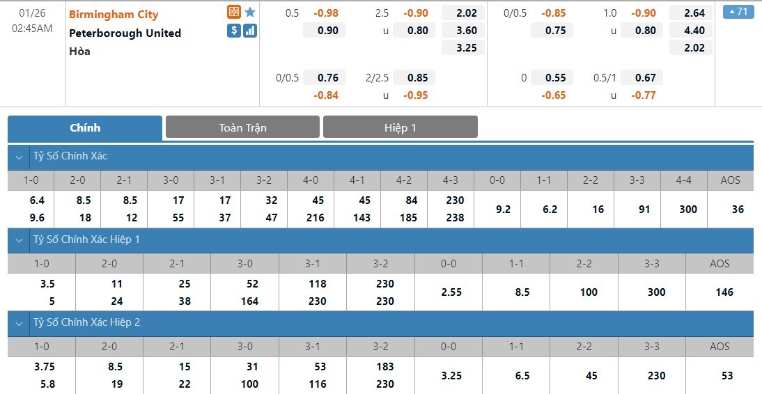Soi kèo tổng quát Birmingham City vs Peterborough United