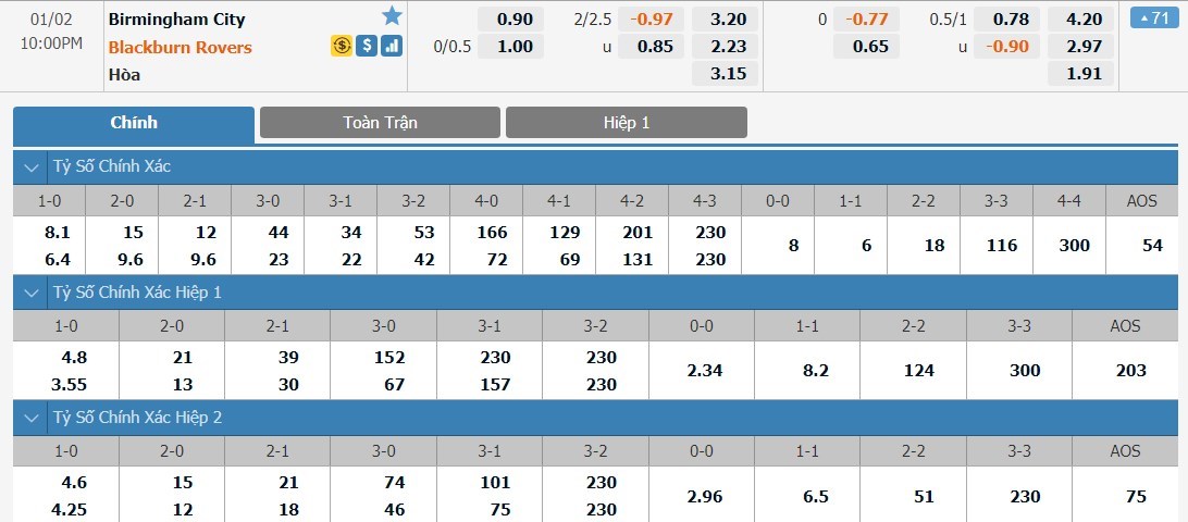 Soi kèo tài xỉu, kèo tỷ số Birmingham vs Blackburn Rovers
